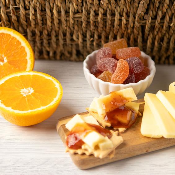 An unforgettable selection of organic fruit, cheese and snacks with plenty to share...or not! Creamy Jack and Cheddar cheeses, an organic French cider, Fig jam, grapefruit hard candies and more create a luxurious experience for your recipient. 11 lbs.